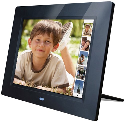 - 20,32 cm (8,0 Zoll) Farb-TFT-LED Bilderrahmen, Split-Screen-Mode: 1, 2, 3 oder 4 Bilder gleichzeitig ansehen, Vorschau-Modus-Funktion, Seitenverhältnis 4:3, USB 2.0-Anschluss, Unterstützt SD-, MMC- und SDHC-Speicherkarten, inkl. Fernbedienung